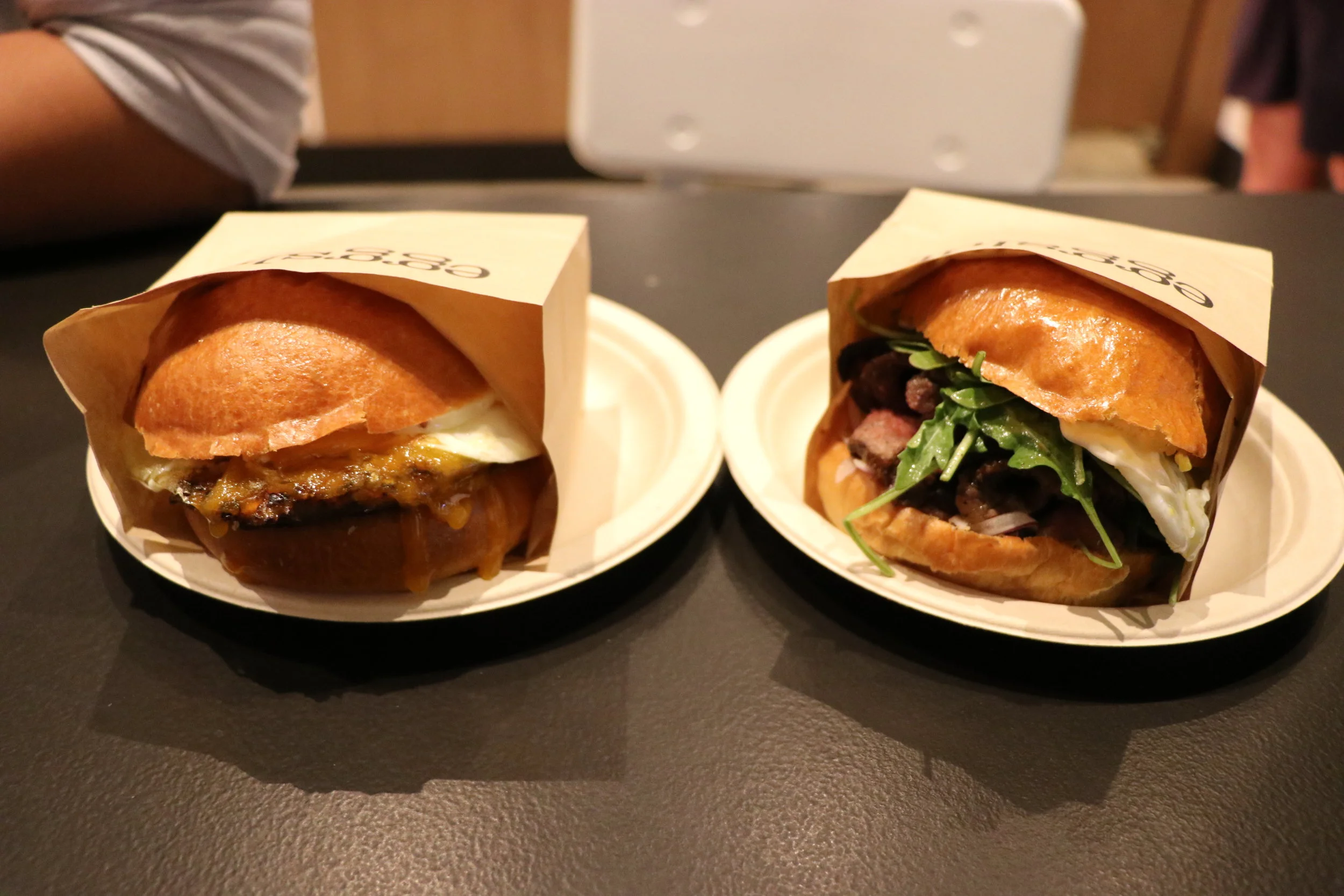 Eggslut(エッグスラット):右チーズバーガー、左ガウチョ