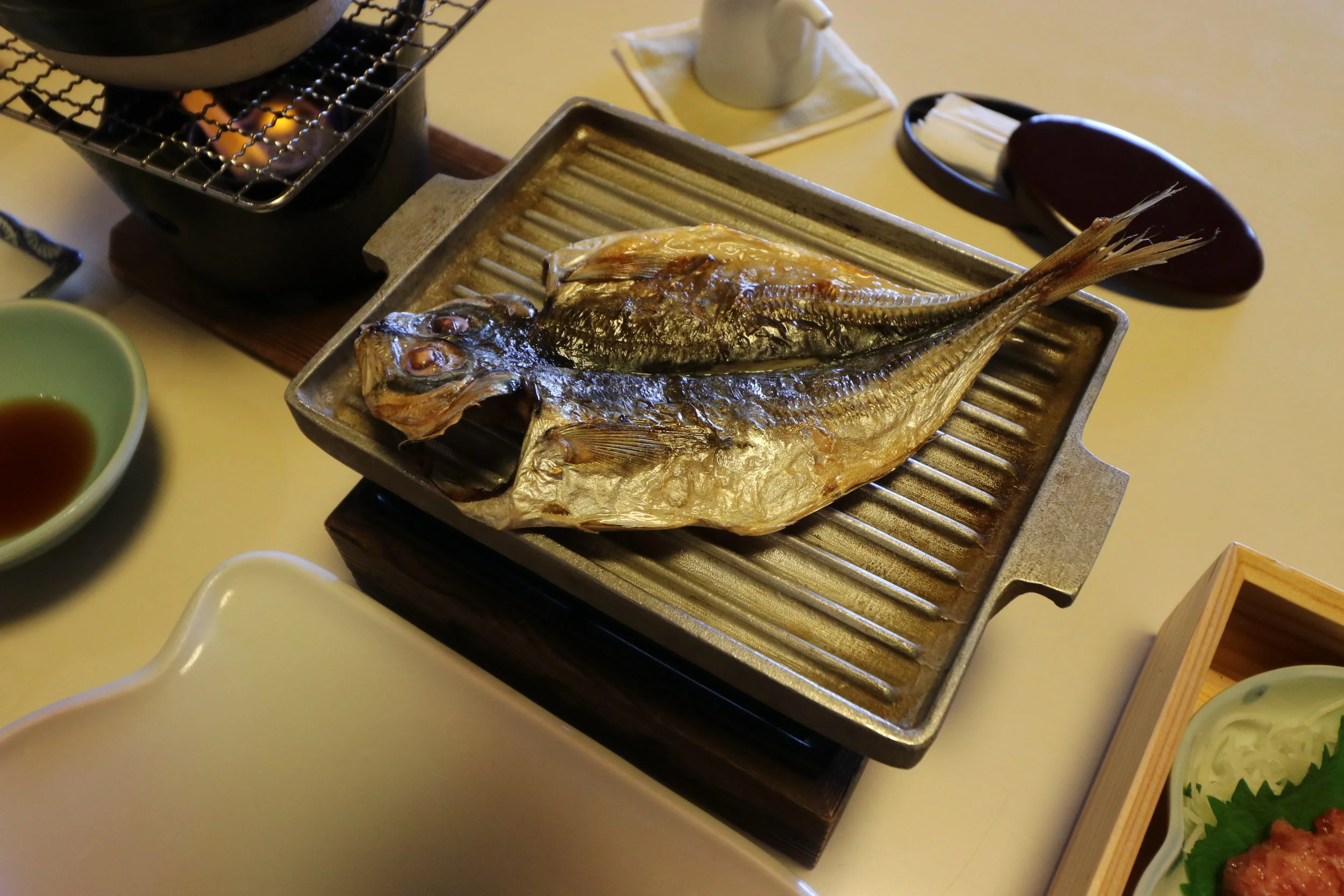 Breakfast was GREAT! It came with lots of seafood, (I like seafood) and was very healthy. Especially, dried horse mackerel was so good. It was juicy and umami was condensed in the meat. I wanted natto but I guess it not too important.