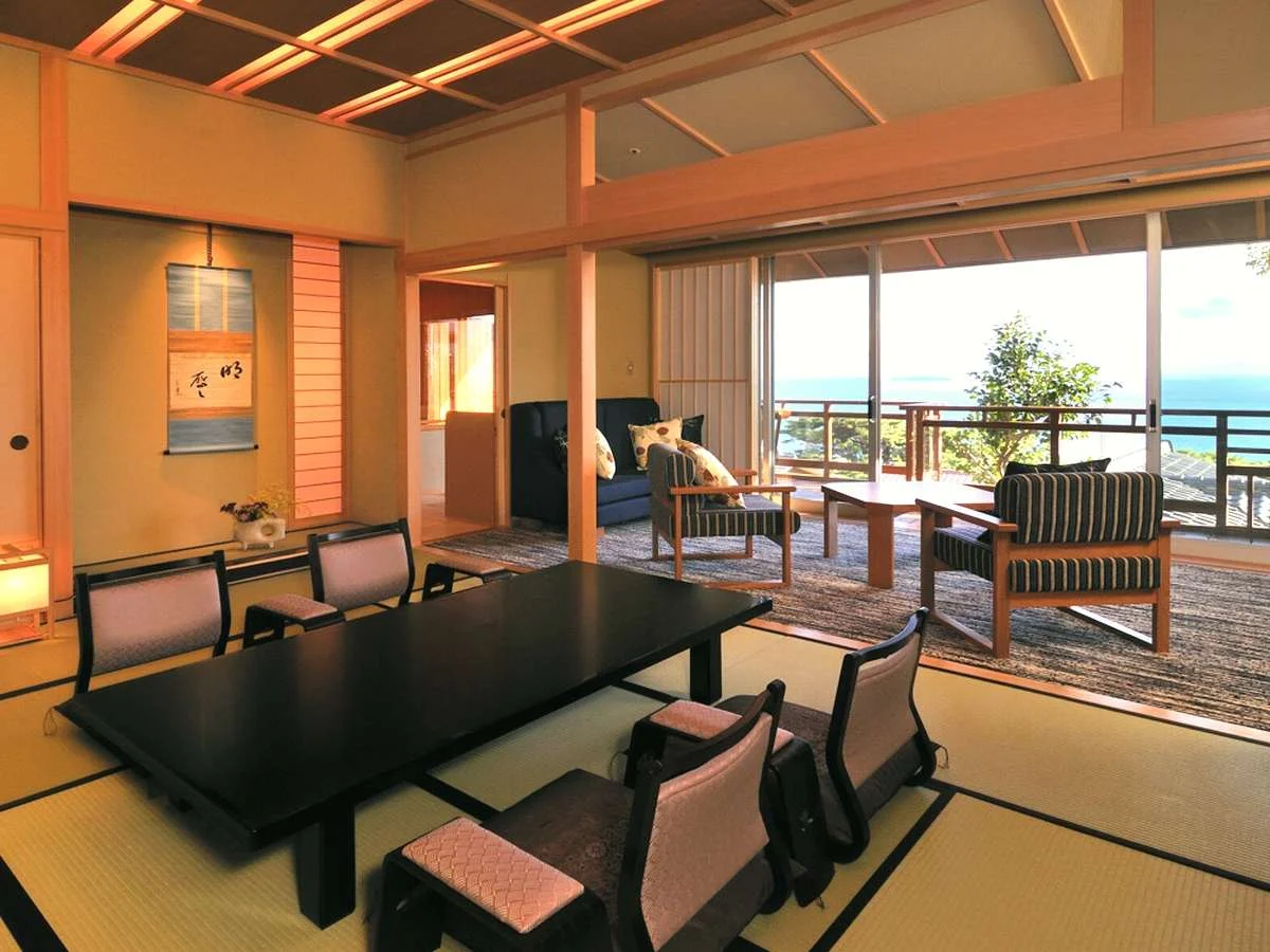 Kamogawakan is in the middle of a beautiful pine forest, only 5 minutes taxi ride from JR Stobo line Kamogawa Station. You can enjoy their fresh seafood dinner and beautiful warming view.